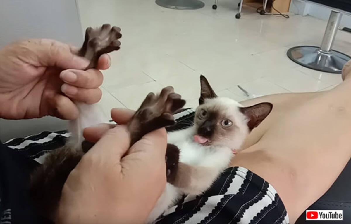 飼い主に足裏マッサージされると連動して舌が動く猫 19年7月10日 エキサイトニュース